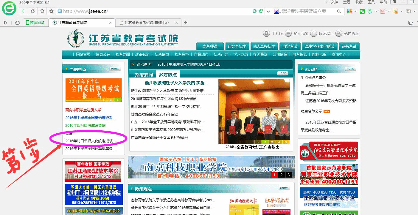 2016年普通高校对口单招录取结果请在江苏省教育考试院官网上查询,网址为:www.jseea.cn/。