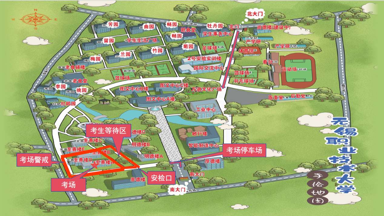 1.考试地点位于无锡职业技术大学(高浪西路1600号),考场路线如下图所示